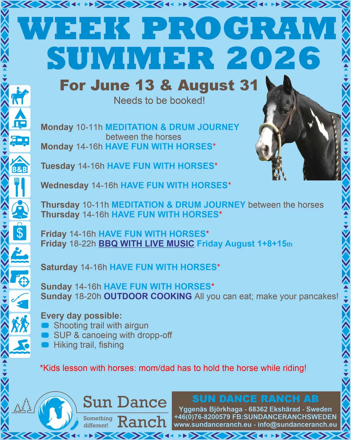 Hier vind je ons zomerprogramma en een document met alle informatie over onze activiteiten met de prijzen.